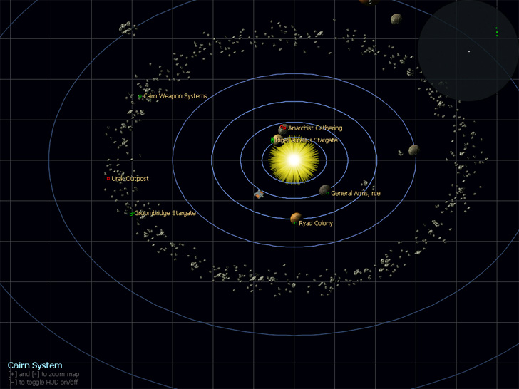 Your goal is to reach the Galactic Core. The galaxy is represented through star systems connected by stargates. At the end of this star system chain is the Galactic Core. Each star system contains an ecosystem of planets, stars, asteroids, stations, and ships. Freighters with escorts transport goods from station to station. Pirate stations and pirate ships are scattered around. Ships enter and exit stargates. Miners extract precious ores from asteroid fields. The galaxy feels very vast and empty, yet at the same time lively.
