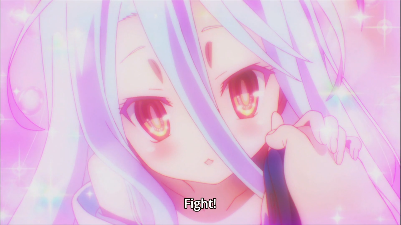 The two main protagonists (Sora and Shiro) are geniuses, to say the least, akin to Lelouch from Code Geass or Light from Death Note. They have an innate talent for figuring out how to win any game or curve ball thrown at them, no matter how impossible it may appear to win, which can be exciting and exhilarating for some, though tried and uninspired for others. The back stories of Sora and Shiro aren’t fully fleshed out, to the extent that we would normally see in a 25+ episode anime, with the anime adopting an approach that focuses mainly on the quickening pace of the plot and surrounding characters. As a result of this, there isn’t as much depth to Sora and Shiro as could be desired, which can be forgiven given the clear direction of the anime and the limited number of episodes. You get a little more feel for the thoughts and feelings of side characters, but definitely not to any appreciable extent. However, given the cliffhanger ending, there seems to be potential, leaving possibilities for more development in the plot (which by the end of the last episode is left with loose ends) and further insight into the characters if the anime continues.