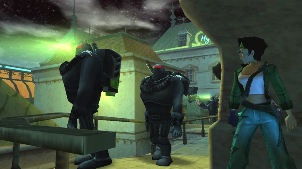 Beyond Good and Evil isn’t able to get away with this, however, because it seems to have put way more ideas on its gameplay plate than it had the time or energy to finish. It has exploration, collecting, photography, combat, platforming, stealth, first person shooting, vehicles, racing, escorting, minigames, chase sequences, resource management, etcetera. But unlike Zelda where these mechanics are either well-integrated, used infrequently, or enjoyable in their own right, Beyond Good and Evil showers them around its environments like an agonizing, 10-hour game of 52 pickup. Want to platform in a vehicle that barely controls well when you’ve got adequate room? Feel like knocking enemies into some electric wire for the 15th time so you can progress? Have a hankerin’ for some stealth that’s constantly utilizing the cumbersome first person mode? Beyond Good and Evil has your back.