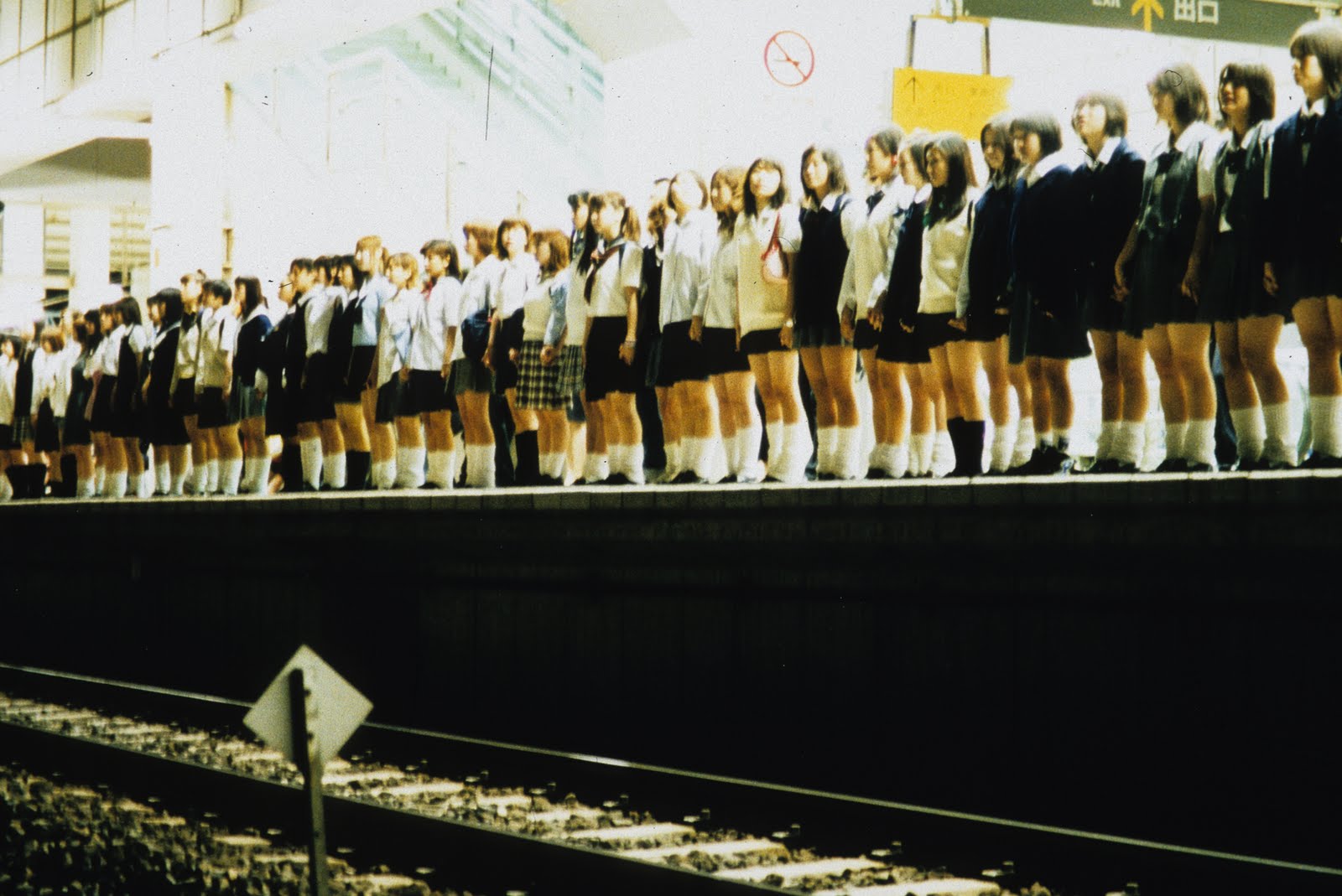 In the film, masses of people commit suicide in an attempt to “connect” with themselves. There isn’t even the slightest hint of what this possibly could mean, but the suicides suggest the fact that one can only achieve a connection with themselves in death. By the end of the aforementioned conversation, Mr. Kuroda instantly takes a gun and commits suicide. So here I’ll ask, what does it mean to have a connection with oneself? Is it akin to some sort of self-actualized purpose like in Maslow’s Hierarchy of Needs? What is the nature of this enlightenment, and what is the significance of this enlightenment being placed in a backdrop of thousands more pursuing the same state of being? Is it, in fact, the same state of being that is ultimately sought after? Suicide-Club_006