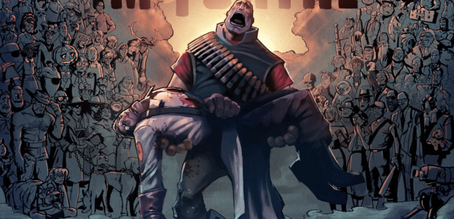 On January 9th, Jay Pinkerton (writer of the Team Fortress comics) posted the cover image for the long-awaited comic #6 that fans have been waiting for since the release of #5 back in August of 2015. As with the covers for the previous issues, all of them are parodies of existing comic book covers, and this one is no exception.