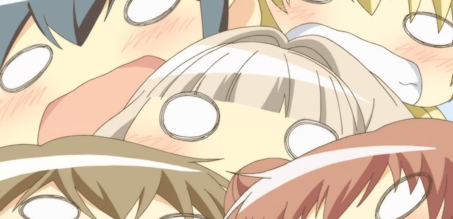 I speak of course, about the fact that I managed to complete watching all five seasons of Hidamari Sketch, as well as the myriad specials and OVAs, within the time span of a week. This unhumanity that I feel, it’s not so much the weight of abandoning my morals to watch cute girls socialising for 60 episodes (I counted). No, its deeper than that; a sort of intense religious experience that shakes up the foundational core of who you consider yourself to be as a human being. In other words, I’ve been formally baptised into the church of Slice of Life (SoL) by Reverend Akiyuki Shinbo himself through the glory and grace of Hidamari Sketch. Where God once smiled, now stands a shrine to Studio Shaft. So it goes.