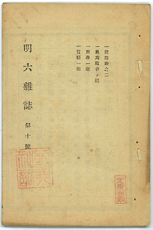 The origins of doujinshi can be dated to February 1, 1874, with the publication of the Meiroku Zasshi by the Meirokusha, an independent society which aimed to “promote civilization and enlightenment” in Japan. This piece isn’t really considered as a “magazine” as in the definition of doujinshi, but it still played an important role in the creation and popularization of collaborative publications.
