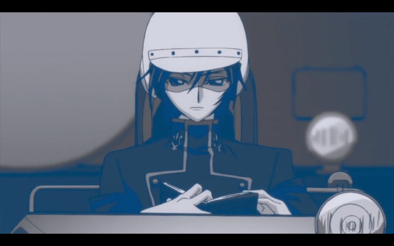 Lelouch’s bored face. By the way, this time he’s reading “Macbeth”, by Shakespeare. Episode 7, R1