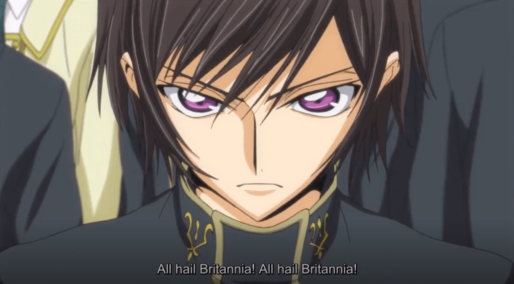 The whole country is raging and screaming “All hail Britannia”; meanwhile, Lelouch is only slightly involved on the emotional level. He becomes even more skillful later in the series.