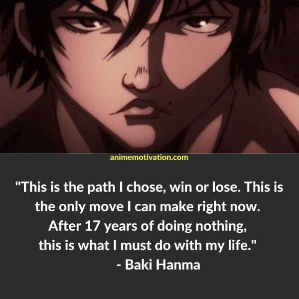 The image below is a quote made by Baki representing the state he is in, now having to live forever as a fighter and abandoning any hopes he once had at having a normal life and being able to fall in love.