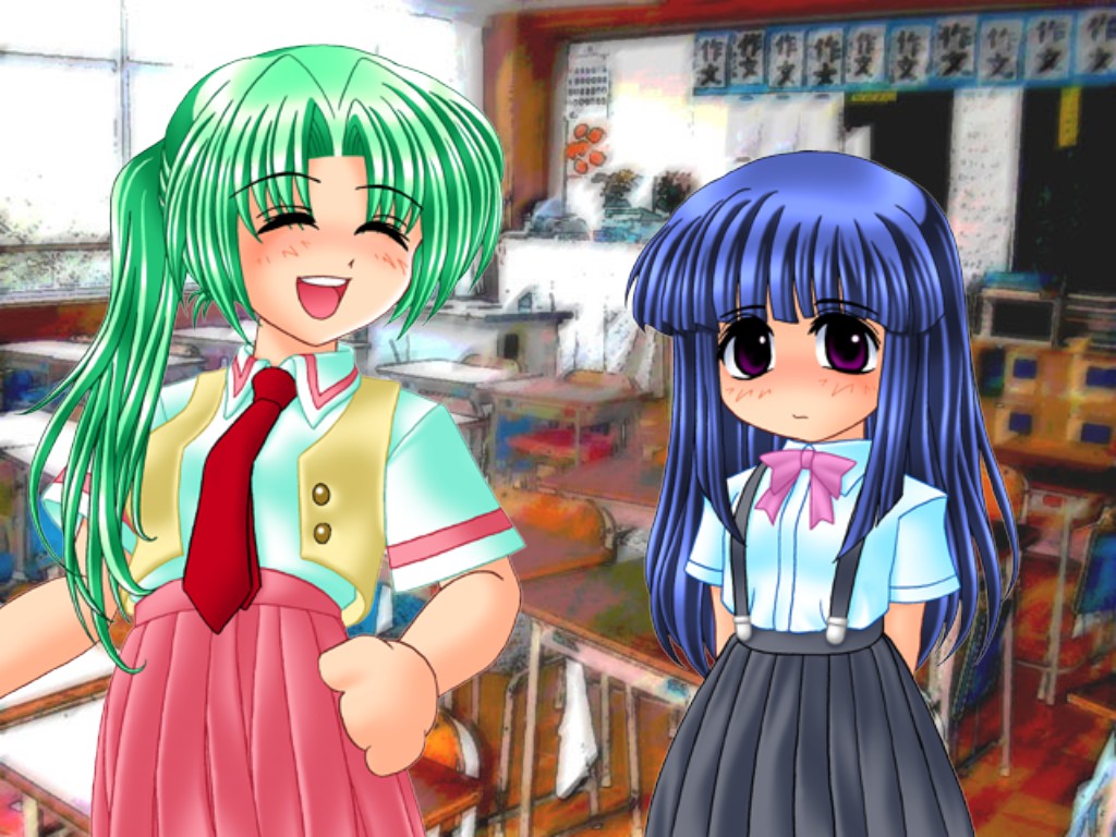 Beautifully drawn hands, am I right? Also note the background being a picture of an ordinary classroom. Later releases, like the PS3 Umineko, have redrawn backgrounds, animations, and character portraits, but I actually prefer the originals.