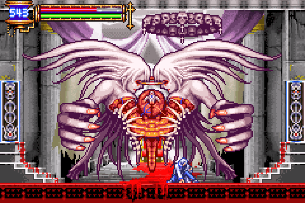 I’ve always held that the Gameboy housed the best of the Metroidvania style of Castlevania games. Aria of Sorrow remains a triumph, sharpening the design of Symphony of the Night significantly and delivering a worthy end to the centuries-long feud between the Belmont clan and Dracula. Playing things out from the other side, Aria puts players in control of a new, reincarnated Dracula trying (and failing, depending on player choice) to put the Vampire Killer to rest. Aria certainly feels like the most confident of Koji Igarashi’s games. Unlike its predecessor, Harmony of Dissonance, it knows when to play according to expectations and when to flip the script. No one would dare call this a risky game, but it is never so desperate to ape Symphony either. The castle featured here is one of the smallest in the series, but that proves to be a fairly ingenious move. Metroidvania’s are plagued by an inescapable sense of fatigue somewhere around the 70% map completion mark. You’ve seen most of the game’s locations and you’ll be ping-ponging back and forth between hallways you’ve seen a million times over. Exploration becomes busy work. Aria’s map is too small to ever be much of a hassle to traverse and the game doesn’t overstay its welcome either. In and out in about 5 hours for the true ending, the game plays like butter as you have Soma slide, double jump, and glide through the castle’s halls. He’s at home in this environment like maybe Alucard only was. It makes sense, too. This is Dracula, back in his stomping grounds. Nothing much poses a great challenge in Aria, be it traversal or combat but I figure if anyone would have an easy time of navigating the castle’s labyrinths, it would be the vampire that built it. Aria may seem archetypical and unimpressive by the standards of contemporary Metroidvanias, like Hollow Knight, but this was truly the first game to nail this brand of world design and draw out its full potential. Even now, the game stands out for being a compact, economical demonstration of everything that is beloved about this subgenre.