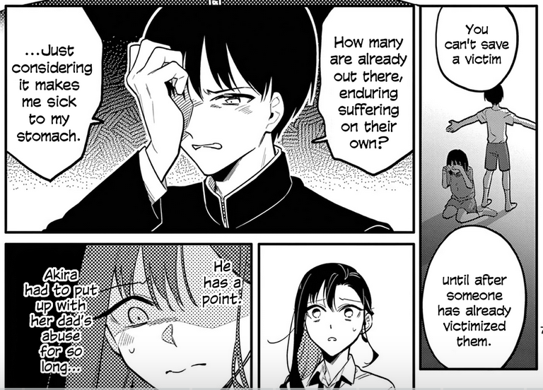 The story complicates this moral stance, too. Who, exactly, is bad enough to warrant dying for their crimes? Does killing people for their crimes make you a criminal too? What about people’s right to a chance to grow and change and atone? And unlike Death Note, these aren’t punishments doled out for convicts from afar, this is a high schooler orchestrating the deaths of people around him; should someone die for something they do when they’re 16?